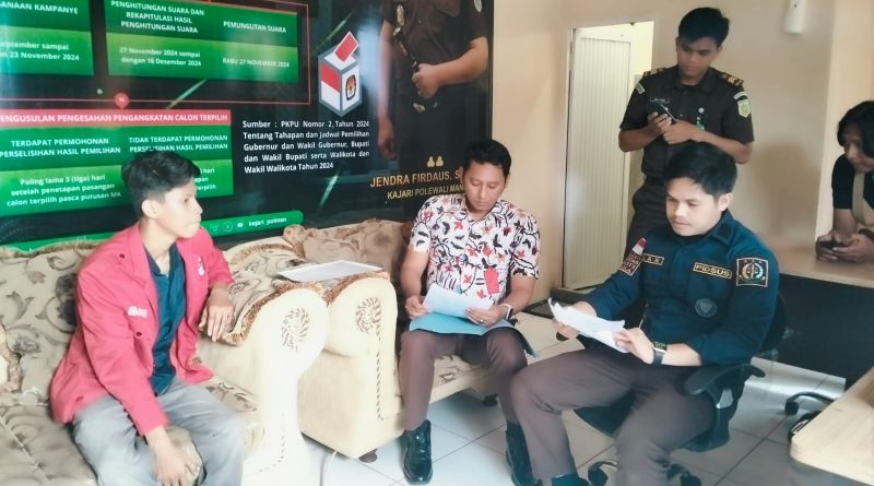 “Setelah berkas laporan yang adik-adik mahasiswa bawa kepada kami, akan kami pelajari dulu dan terkait perkembangannya akan konfirmasi melalui nomor telpon yang tertera di berkas ini,” kata Angga Saputra, Plh Kasi Intel Kejaksaan Negeri Polman.