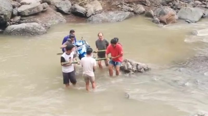 Terpantau kondisi terkini sekitar jembatan kambuangan saat di lalui sangat membahayakan masyarakat karena masyrakat harus bahu – membahu mengangkat motor untuk bisa menyebrang, namun ketika debit air meluap lagi maka akses tertutup tak dapat dilalui.