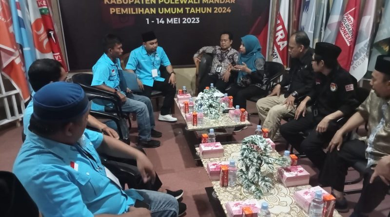 Berselang beberapa menit kedepan rombongan Partai Gelora kemudian diterima langsung ketua KPU Rudianto beserta komisioner dan juga Bawaslu Polman, tepatnya di lantai 2 untuk menyerahkan berkas Bacaleg.