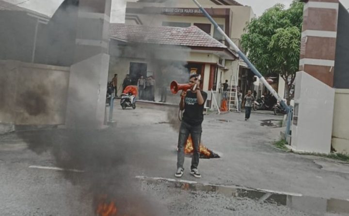 Bidikcelebes.com | Majene – Geruduk Mapolres Majene puluhan massa aksi yang tergabung dalam Kesatuan Pemuda dan Kerakyatan (KPK) menggelar demonstrasi besar-besaran di Mapolres Majene, Kamis, (27/2/2025). Massa aksi mendesak Kapolres Majene dan Kasat Reskrim dicopot akibat diduga terlibat permainan kotor terkait maraknya rokok ilegal di Majene.