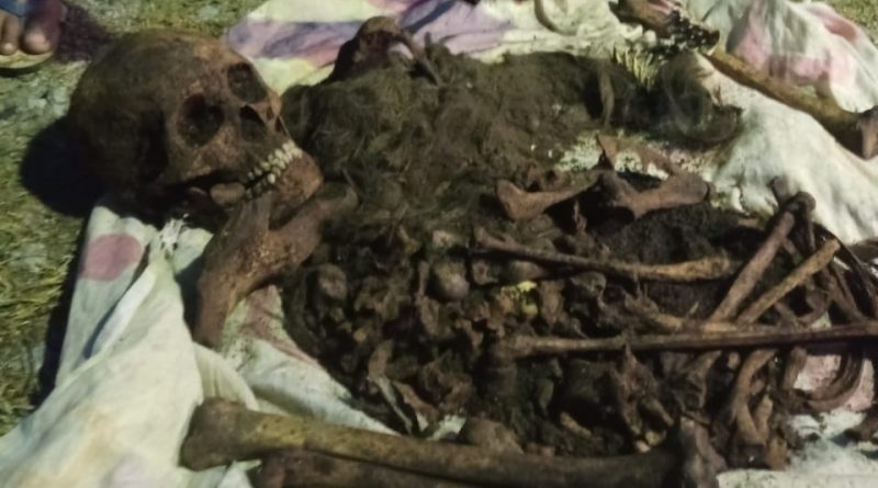 Palu, 20 November 2021, Kerangka mayat telah ditemukan di Petobo diduga korban likuifaksi yang terjadi pada tahun 2018 lalu. Kerangka mayat yang ditemukan warga pada hari ini terlihat masih utuh dan berjenis kelamin perempuan, diketahui kerangka mayat tersebut berjenis kelamin perempuan dari pakaian dalam yang masih melekat dan juga ditemukan penjepit rambut.